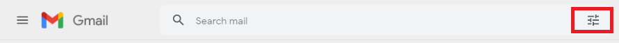 1. Nhấn biểu tượng Filter ở góc bên phải thanh tìm kiếm của Gmail như hình bên dưới.