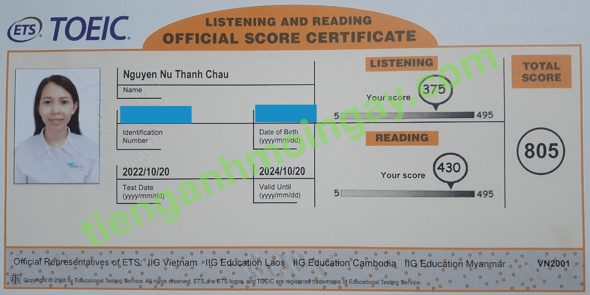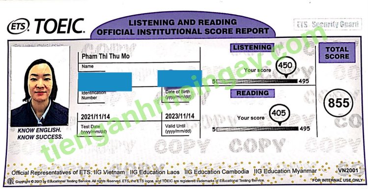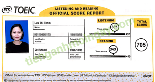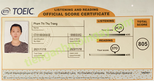 Sau thời gian 6 tháng ôn tập, chị Mo đã đạt được 815 điểm TOEIC thật.