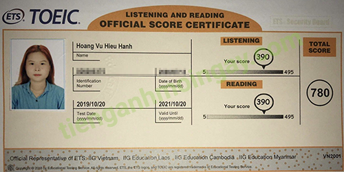 Sau thời gian 1 tháng ôn tập, bạn Hạnh đã đạt 780 điểm TOEIC thật.