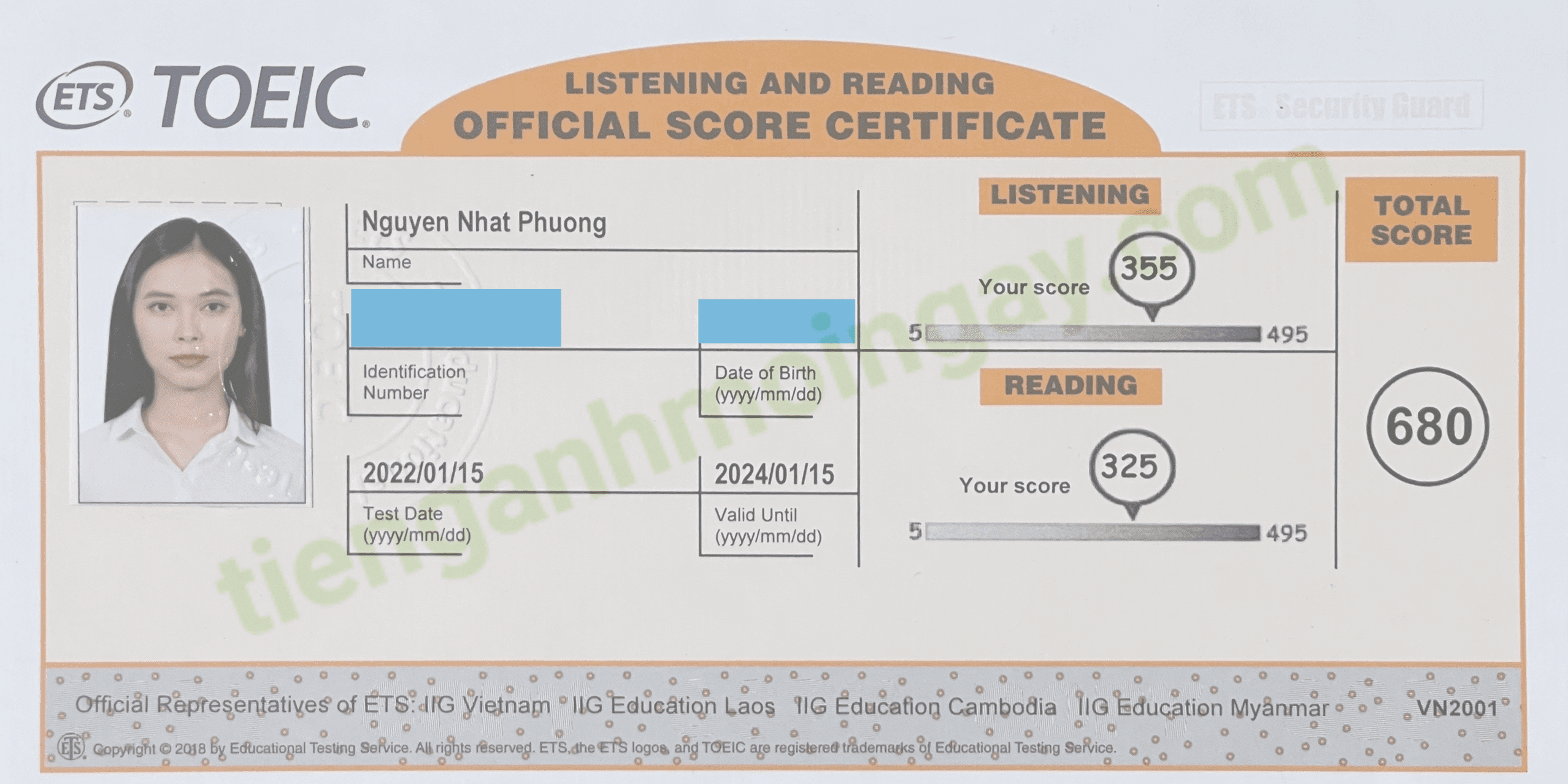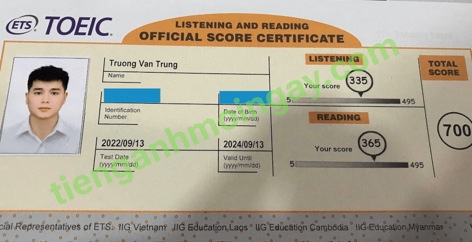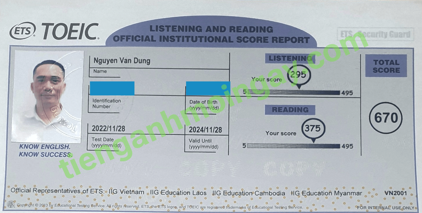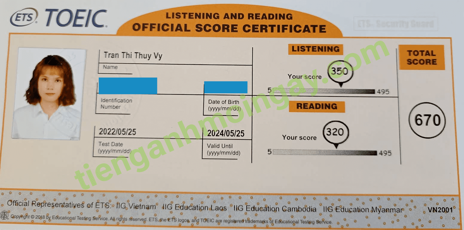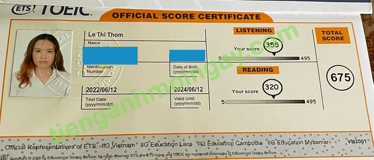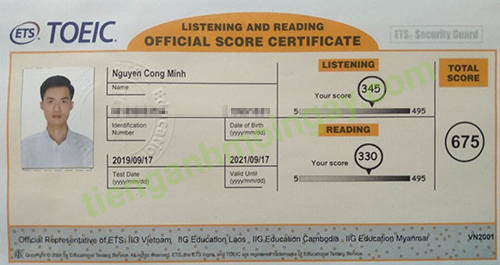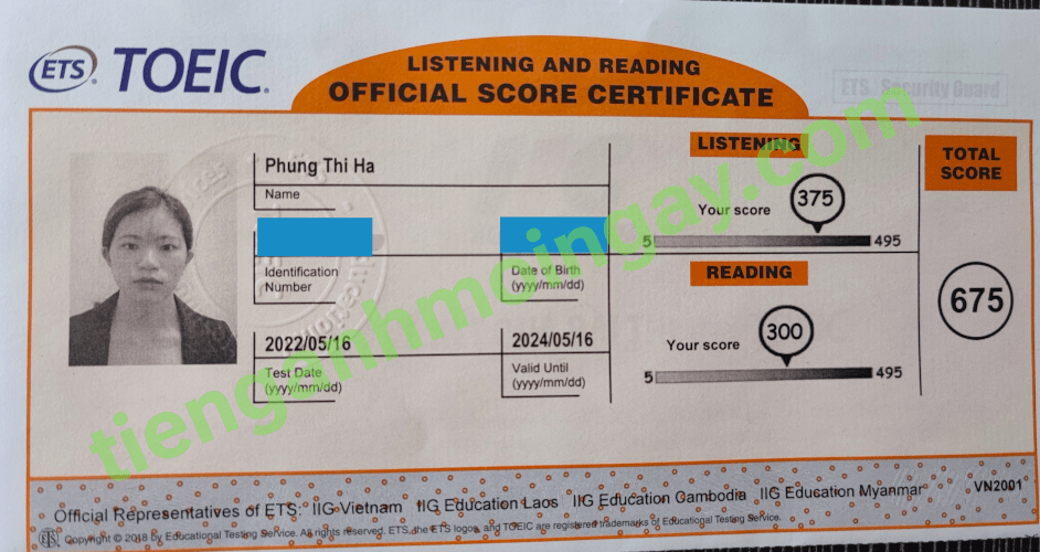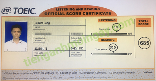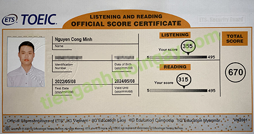 Sau thời gian 4 tháng ôn tập, bạn Minh đã tăng từ 350 để đạt 675 điểm TOEIC thật.