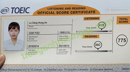 Sau thời gian gần 4 tháng ôn tập, bạn Ân đã tăng từ 540 điểm và đạt được 775 điểm TOEIC thật.