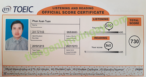 Sau thời gian ôn tập, bạn Tuấn đã đạt được 730 điểm TOEIC thật.