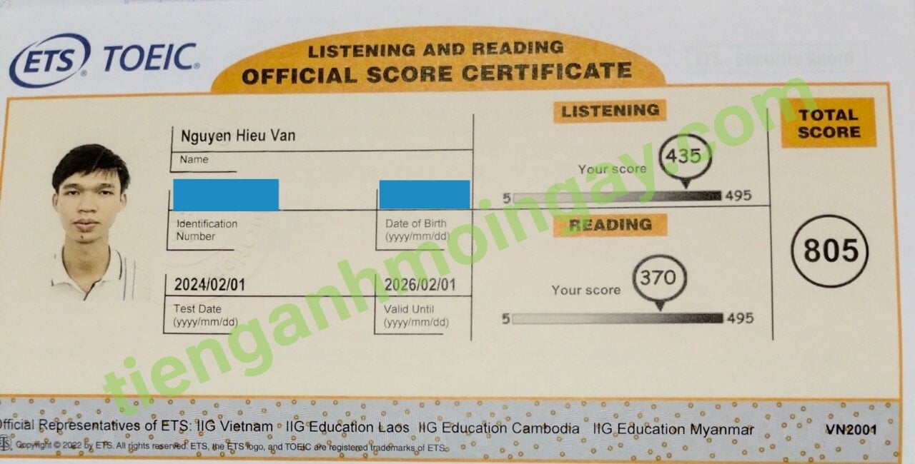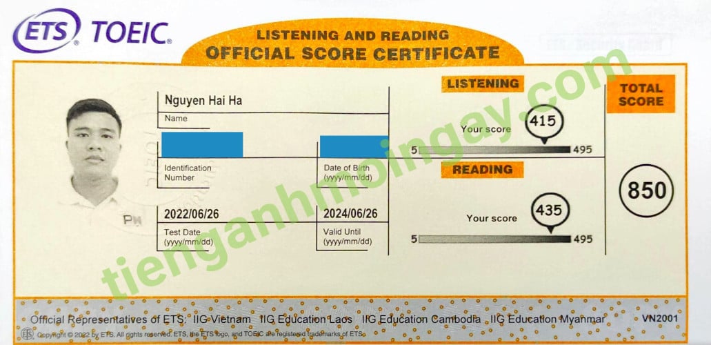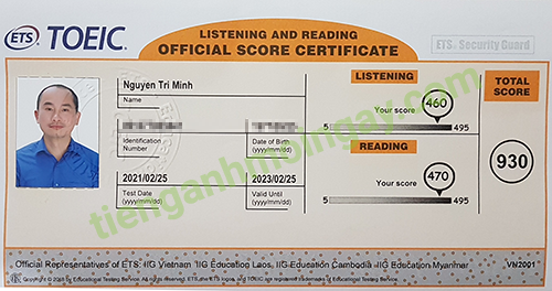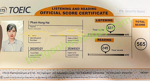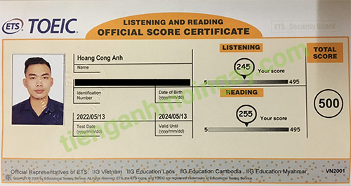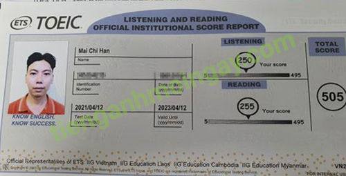 Sau thời gian ôn tập, anh Hải đã đạt được 505 điểm TOEIC thật.