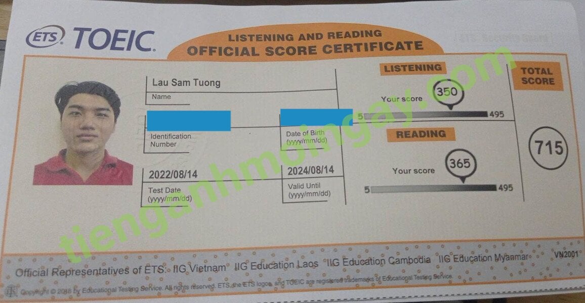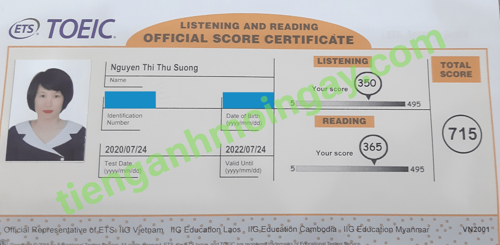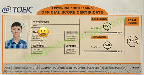 Sau hơn 2 tháng học và luyện thi Toeic cùng TAMN, bạn Tuong đã đạt 715 điểm thi TOEIC chính thức.