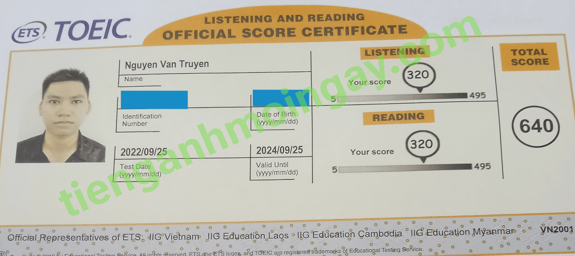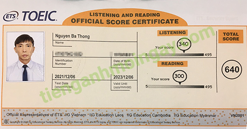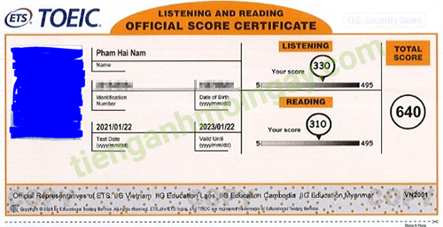 Sau thời gian 4 tháng ôn tập, anh Nam đã tăng từ 410 để đạt 640 điểm TOEIC thật.