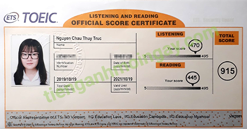 Sau thời gian ôn tập 3 tháng, bạn Trúc đã tăng từ 700 điểm và đạt được 915 điểm TOEIC thật. Một số điểm rất cao!