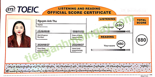 Sau thời gian ôn tập 1 tháng, bạn Thư đã tăng từ 600 điểm và đạt được 880 điểm TOEIC thật.