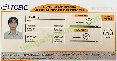 Sau thời gian ôn tập 1 tháng, bạn Hương đã tăng từ 610 điểm và đạt được 735 điểm TOEIC thật.