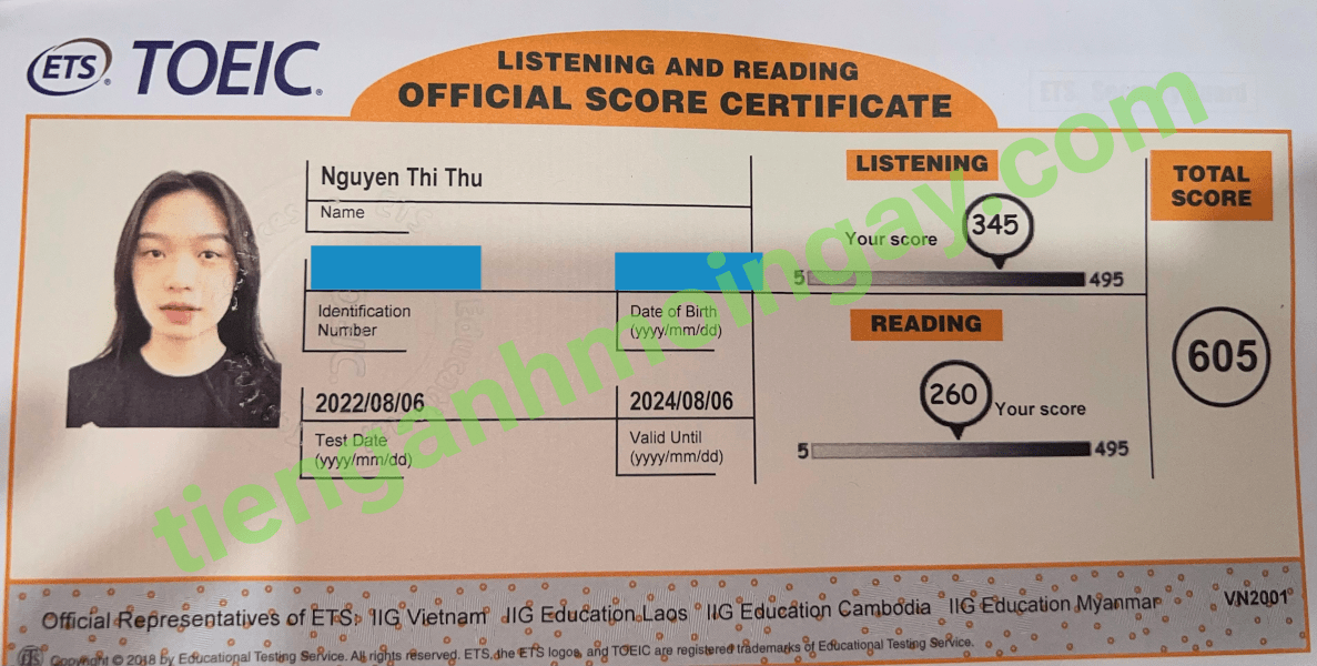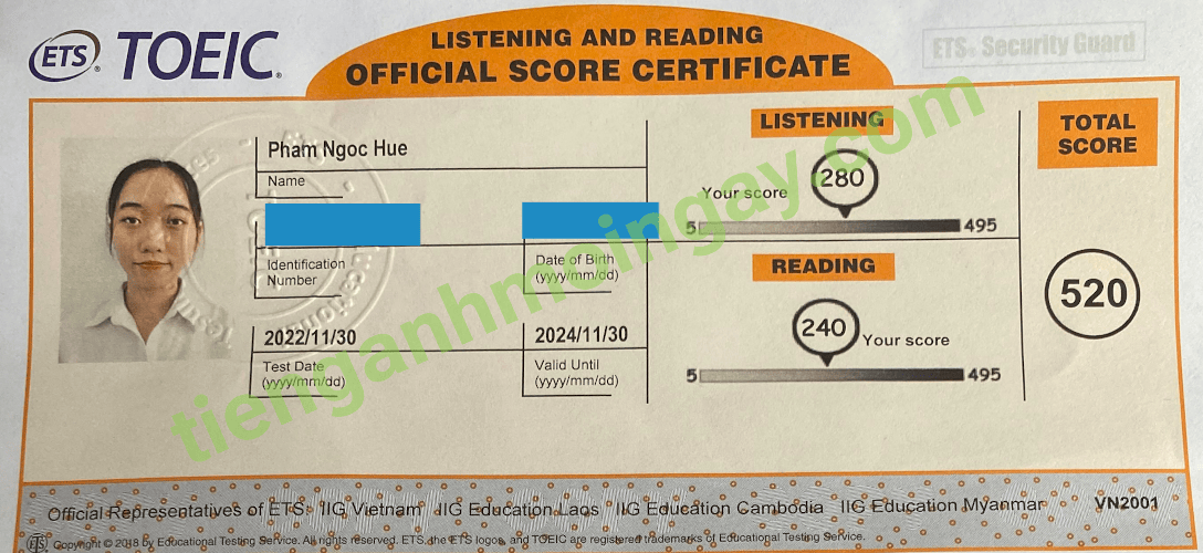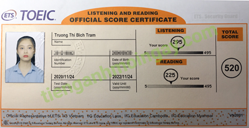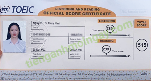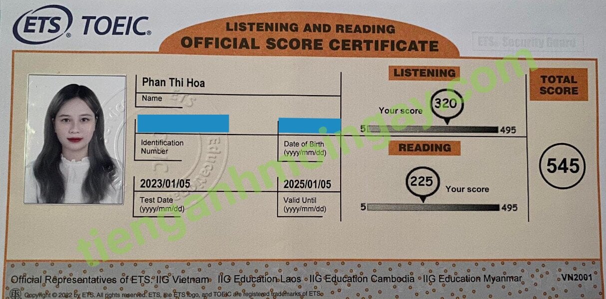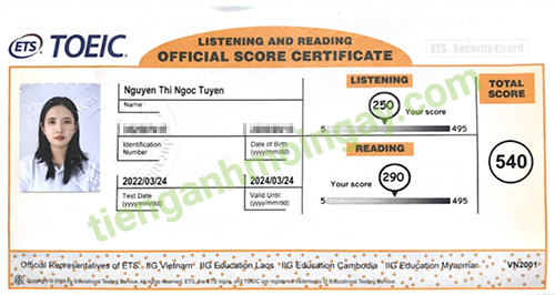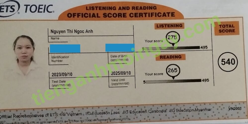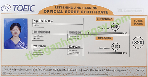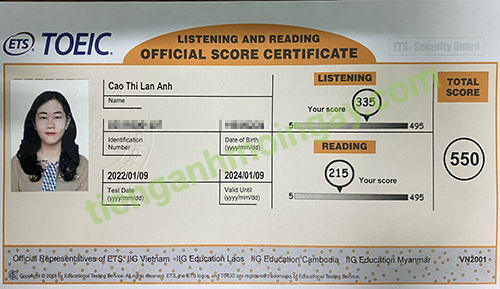 Sau 9 tháng học và luyện thi Toeic cùng TAMN, bạn Hoa đã đạt 545 điểm thi TOEIC chính thức.