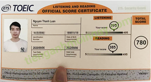 Sau thời gian 6 tháng ôn tập, anh Luân đã tăng từ 400 điểm và đạt được 780 điểm TOEIC thật.