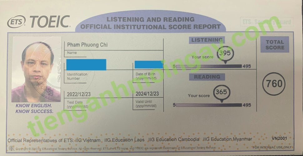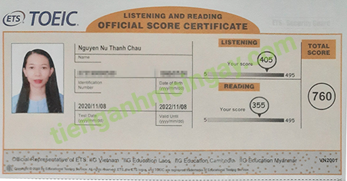 Sau thời gian ôn tập, chị Châu đã đạt được 760 điểm TOEIC thật.