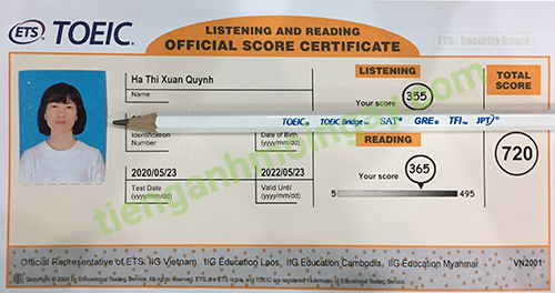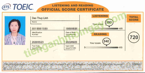 Sau thời gian ôn tập, chị Linh đã đạt được 720 điểm TOEIC thật.