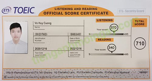 Sau 2 tháng ôn tập, bạn Cường đã đạt 710 điểm TOEIC thật.