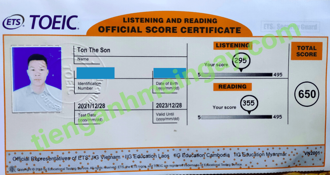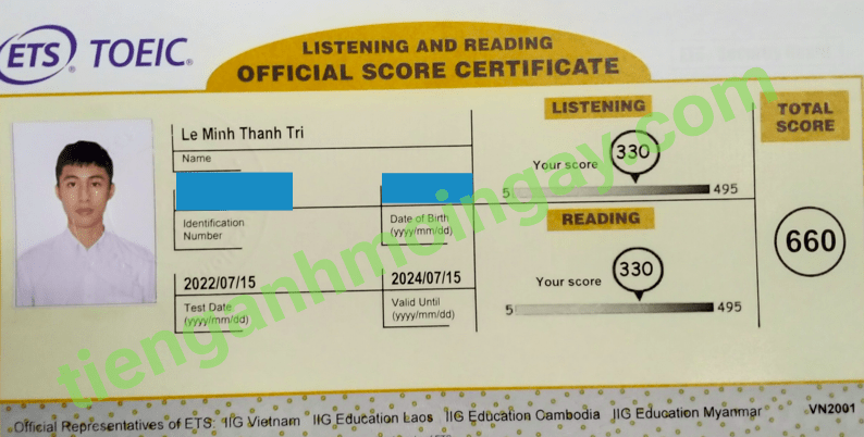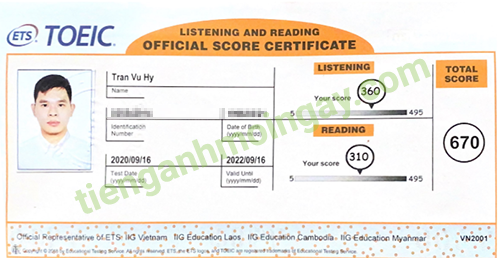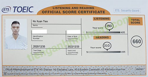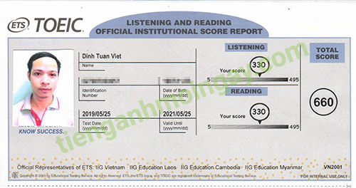 Sau thời gian ôn tập 3 tháng, anh Việt đã tăng từ 450 điểm và đạt được 660 điểm TOEIC thật.