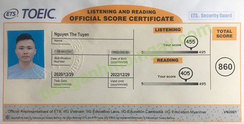 Sau thời gian ôn tập, anh Tuyên đã đạt 860 điểm TOEIC thật.