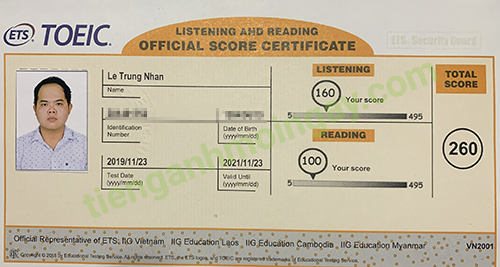 Sau thời gian ôn tập 1 tháng, bạn Nhân đã đạt được 260 điểm TOEIC thật.