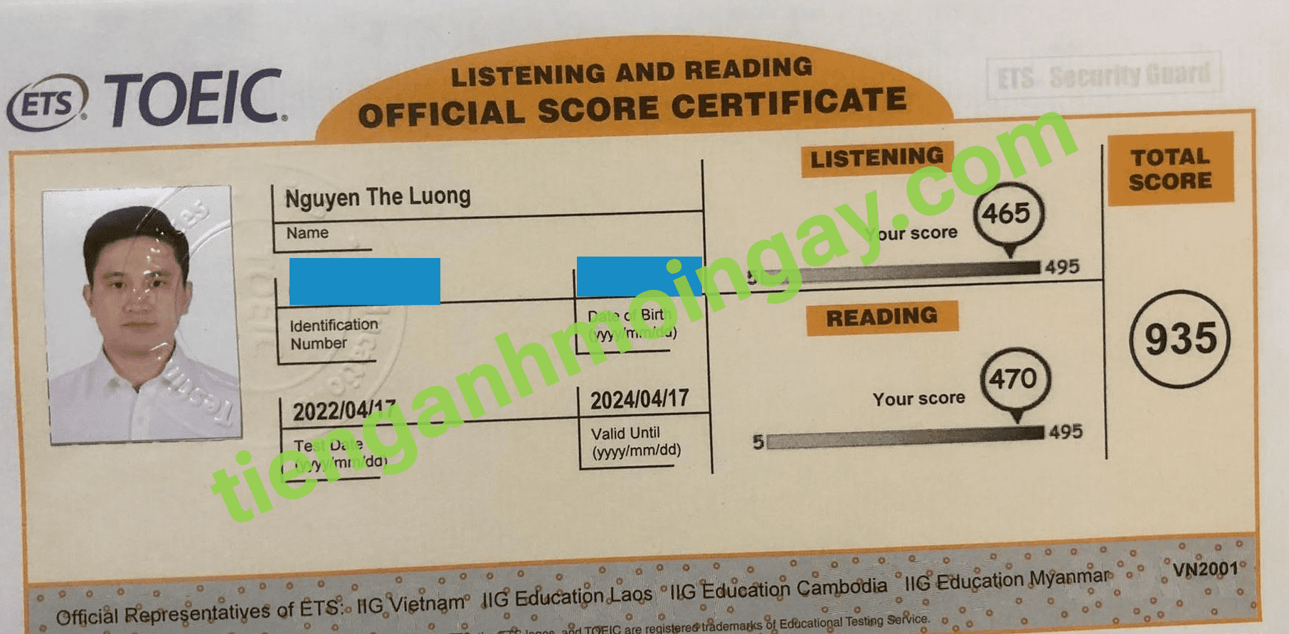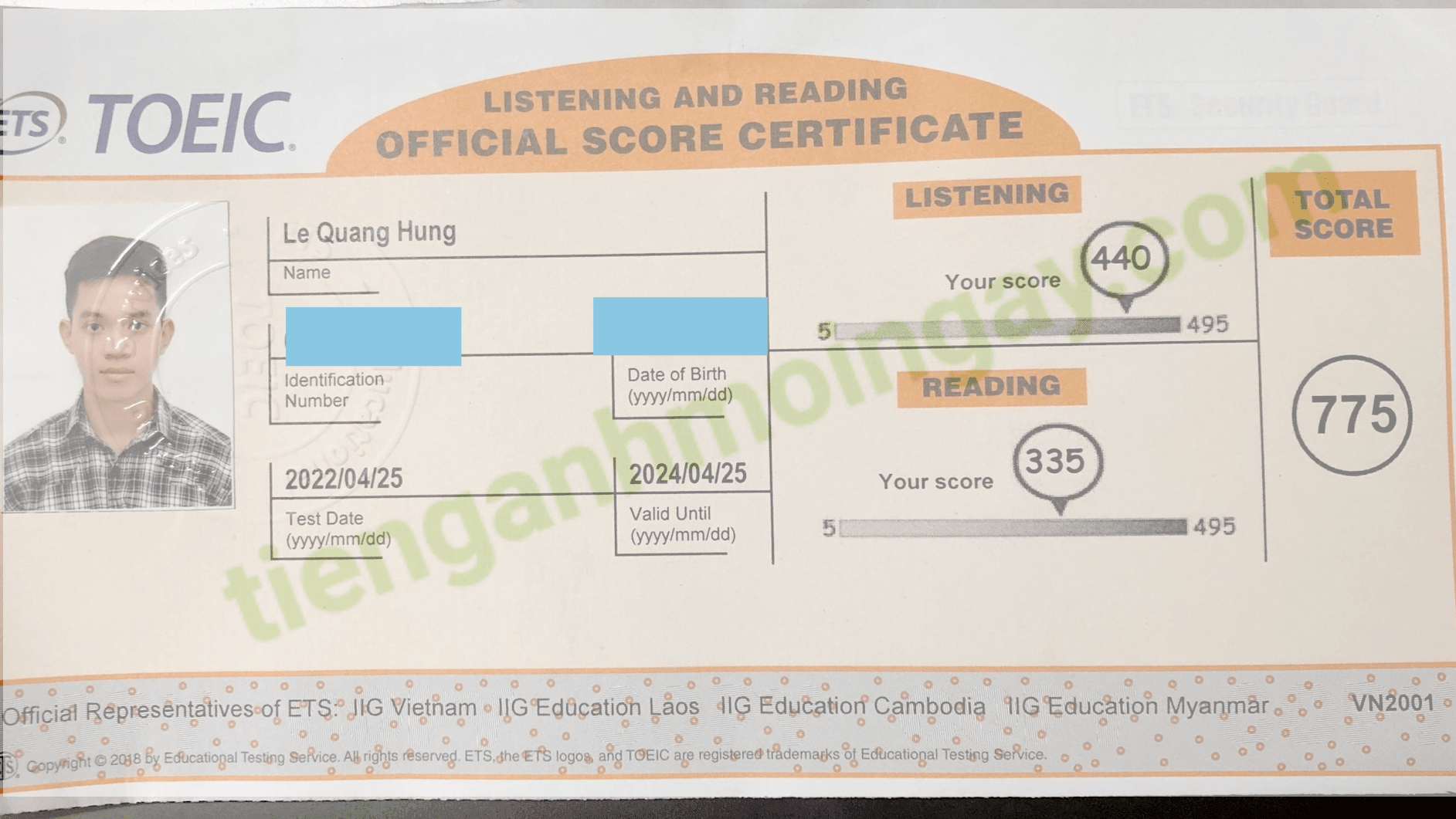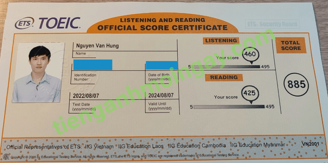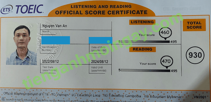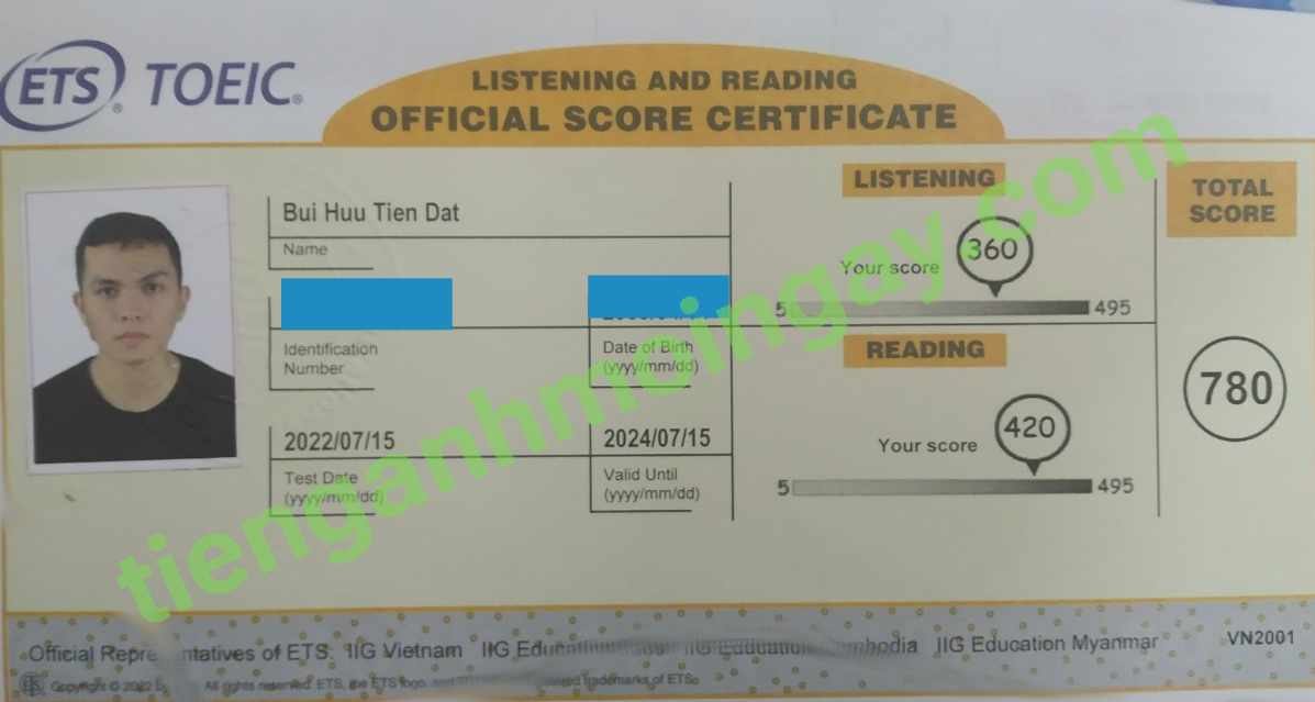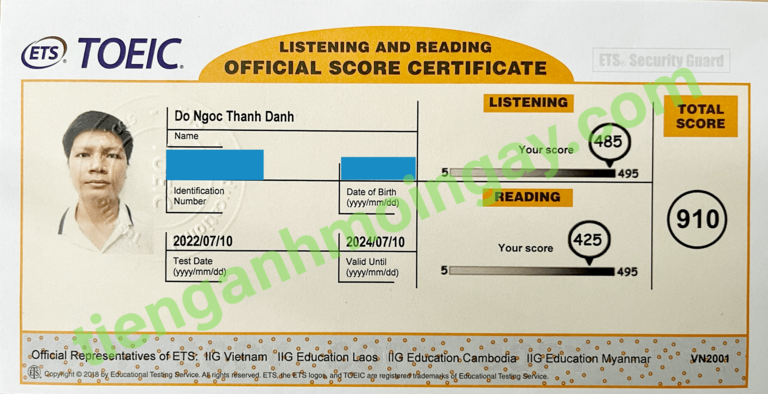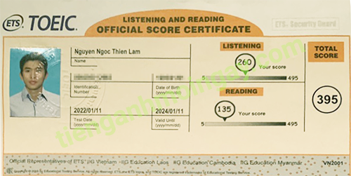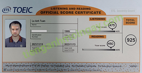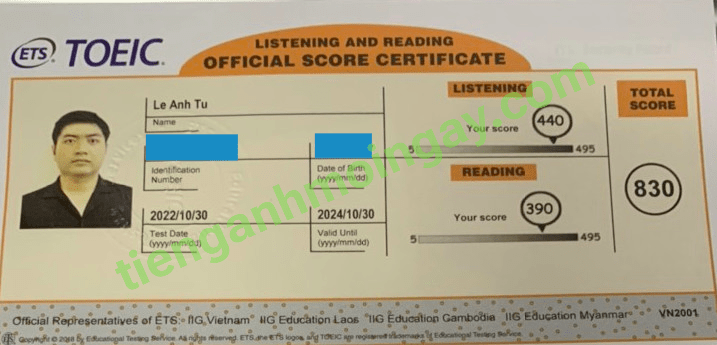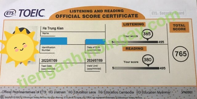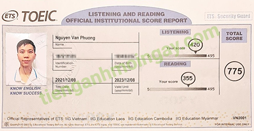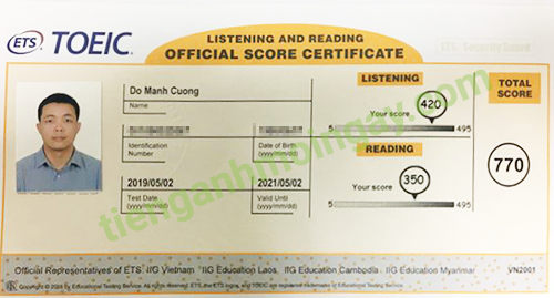 Sau thời gian 3 tháng ôn tập, anh Cường đã đạt được 770 điểm TOEIC thật.