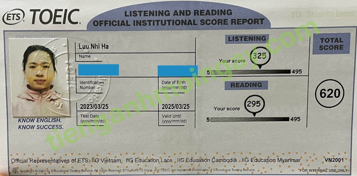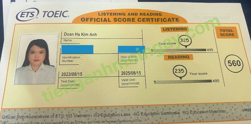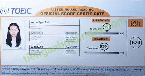 Sau 6 tháng học và luyện thi Toeic cùng TAMN, bạn Hà đã thi đạt 620 điểm thi TOEIC thật.