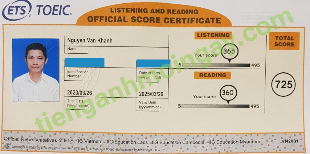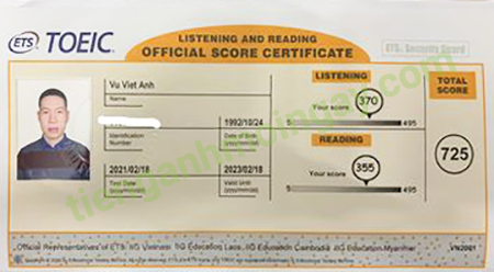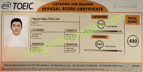 Sau 6 tháng học và luyện thi Toeic cùng TAMN, bạn Khánh đã đạt 725 điểm thi TOEIC chính thức.