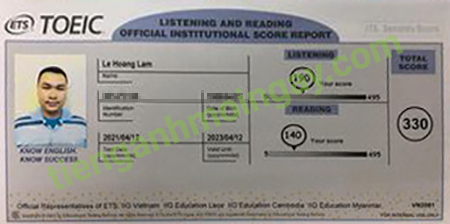 Sau thời gian ôn tập, anh Hẳn đã đạt được 330 điểm TOEIC thật.