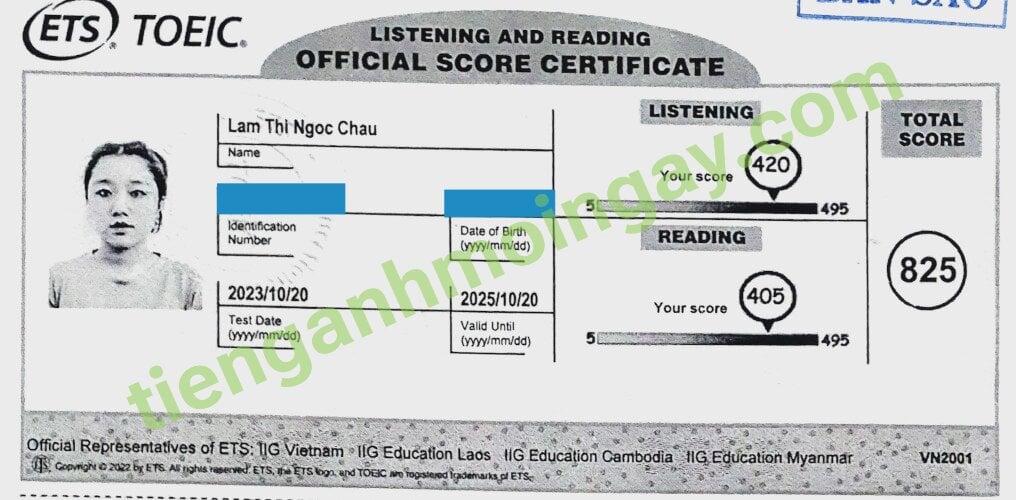 Sau hơn 1 tháng học và luyện thi Toeic cùng TAMN, bạn Châu đã tăng từ 700 điểm đầu vào và thi đạt 825 điểm thi TOEIC thật.