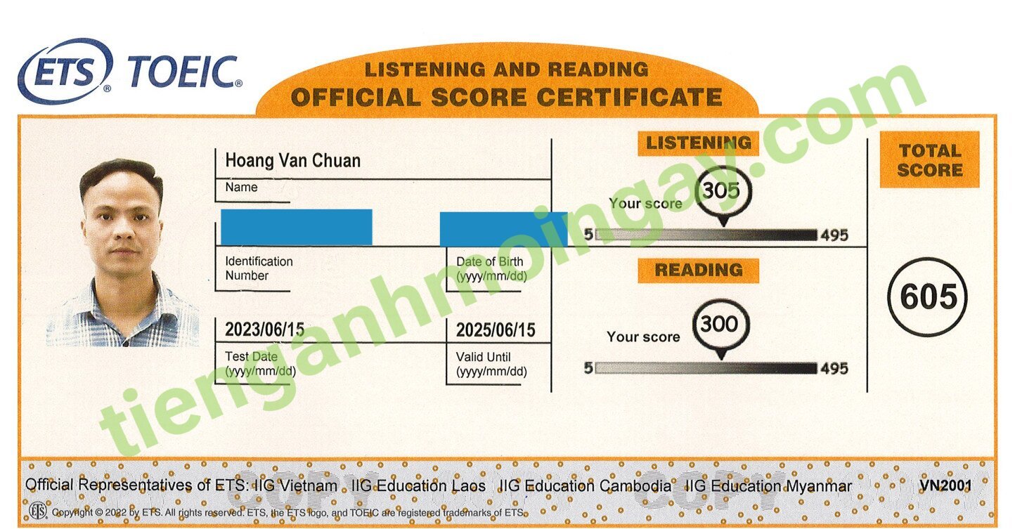 Sau 9 tháng học và luyện thi Toeic cùng TAMN, bạn Chuẩn đã tăng từ 370 điểm TOEIC đầu vào và đạt 605 điểm thi TOEIC chính thức.