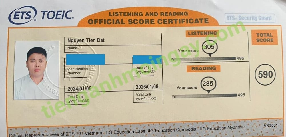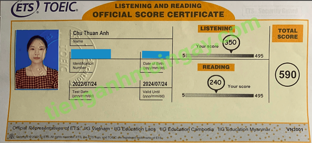 Sau một thời gian luyện thi Toeic cùng TAMN, bạn Đạt đã thi đạt 590 điểm thi TOEIC thật.
