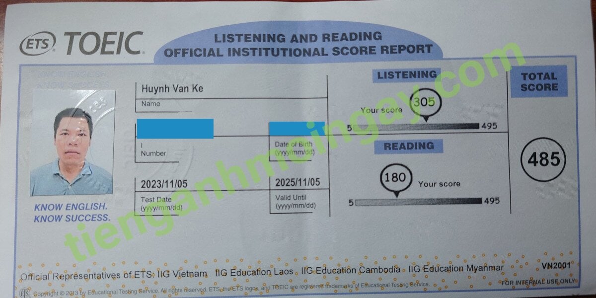 Sau 3 tháng học và luyện thi Toeic cùng TAMN, anh Kế đã thi đạt 485 điểm TOEIC thật.