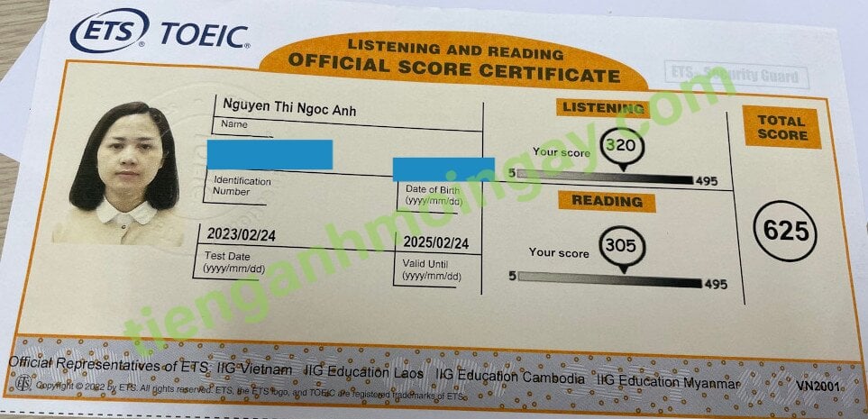 Sau 3 tháng học và luyện thi Toeic cùng TAMN, bạn Ánh đã tăng từ 300 điểm TOEIC đầu vào và đạt 625 điểm thi TOEIC chính thức.