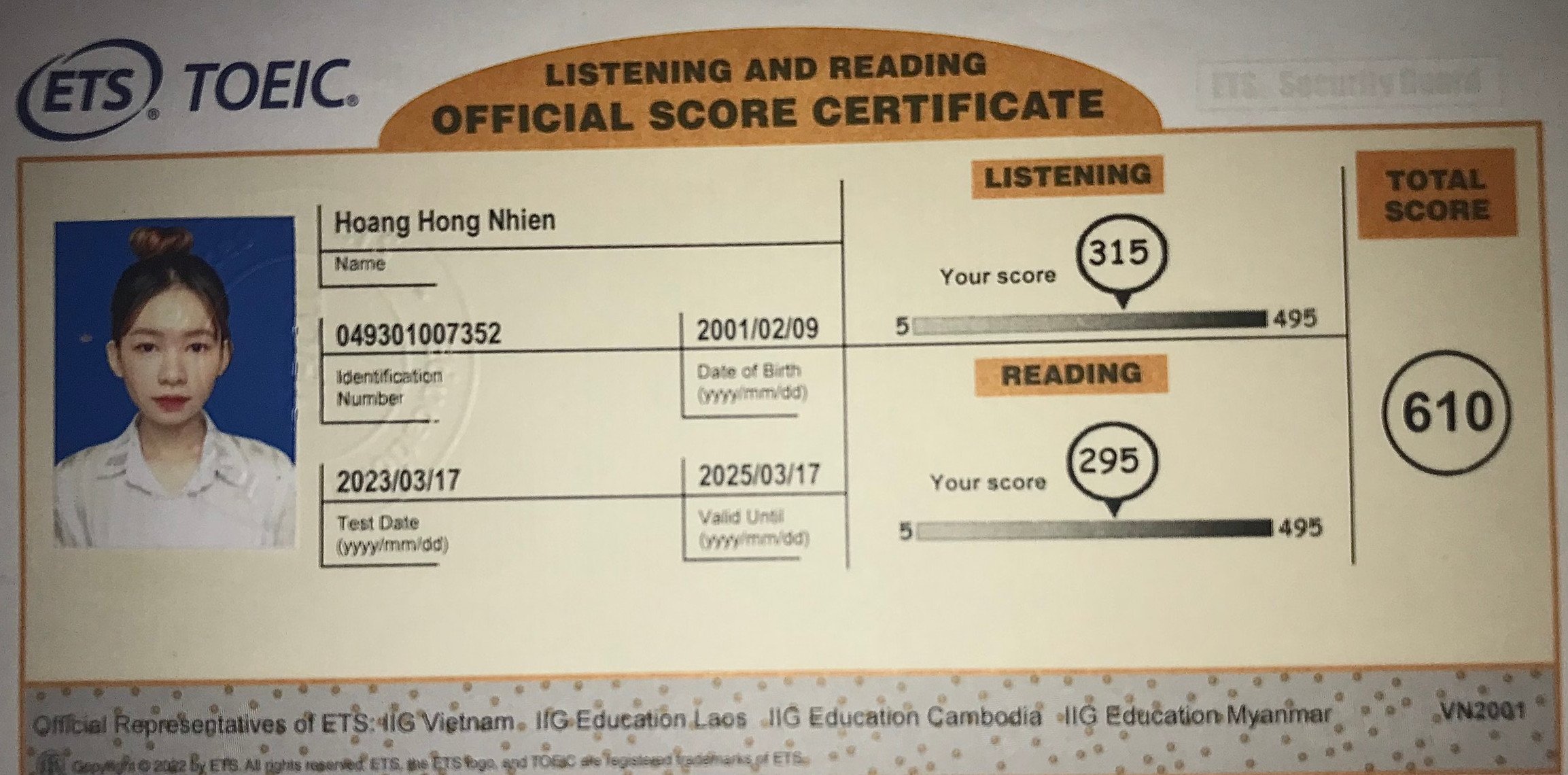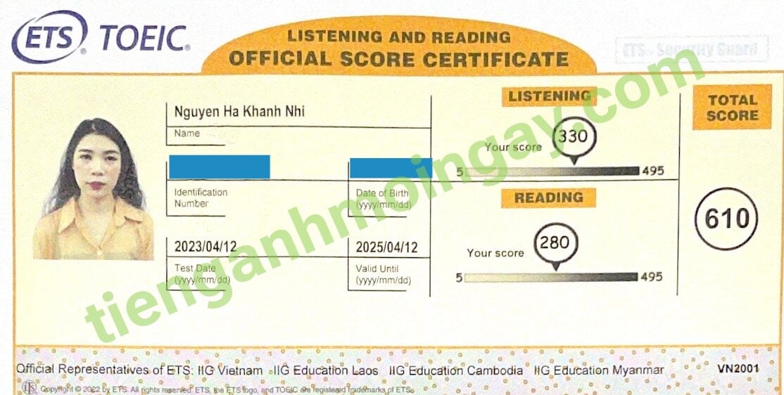 Sau 2 tháng học và luyện thi Toeic cùng TAMN, bạn Nhi đã đạt 610 điểm thi TOEIC chính thức.