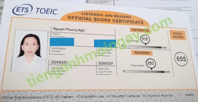 Sau 6 tháng học và luyện thi Toeic cùng TAMN, bạn Nghi đã tăng từ 500 điểm đầu vào và thi đạt 655 điểm thi TOEIC thật.