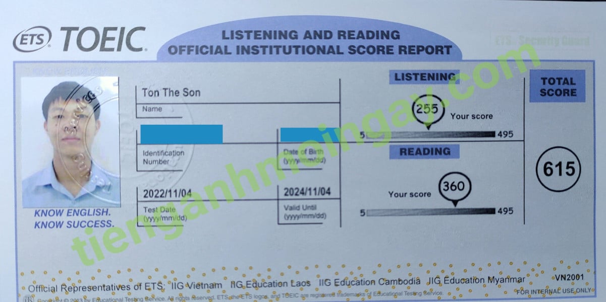 Sau khi học và luyện thi Toeic cùng TAMN, bạn Sơn đã đạt 615 điểm thi TOEIC chính thức.