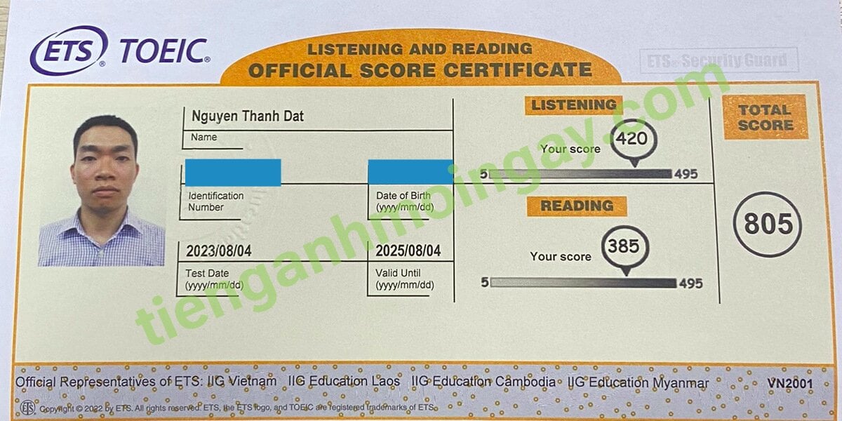6. Kết quả thi TOEIC của bạn Nguyễn Tiến Đạt