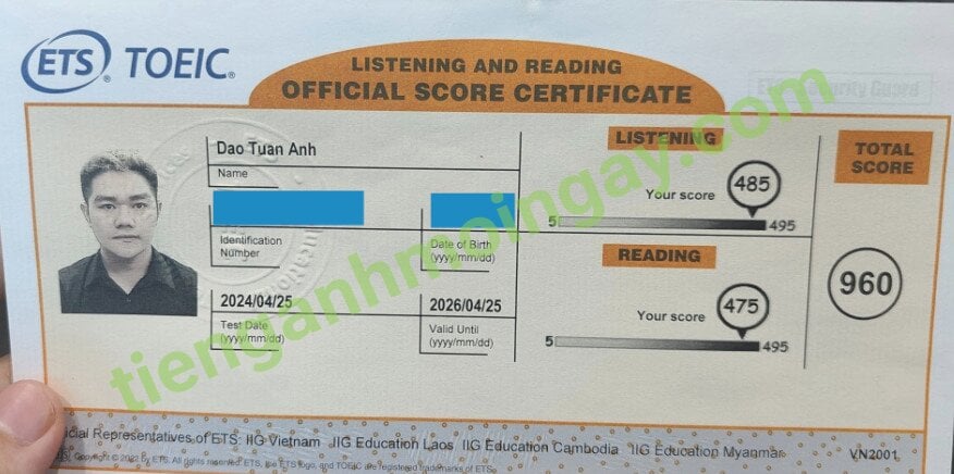 Sau 6 tháng học và luyện thi Toeic cùng TAMN, bạn Tuấn Anh đã tăng từ 590 điểm TOEIC đầu vào và đạt 960 điểm thi TOEIC thật.
