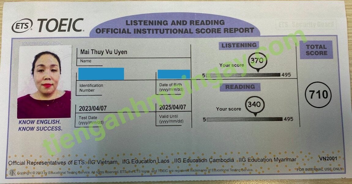 1. Kết quả thi TOEIC của bạn Mai Thúy Vũ Uyên
