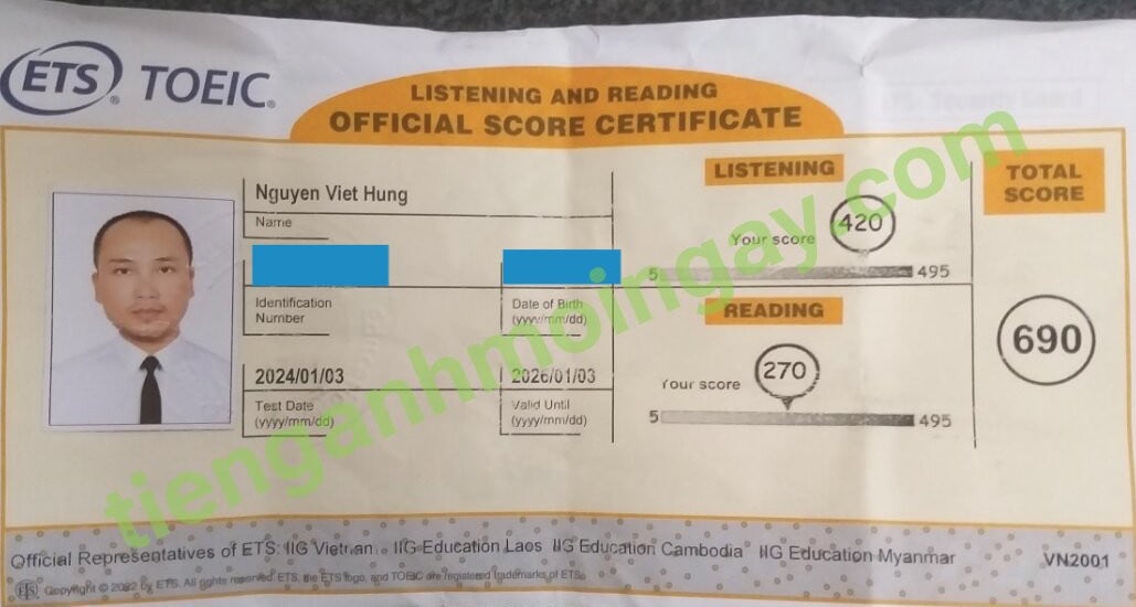 Sau 8 tháng học và luyện thi Toeic cùng TAMN, anh Hùng đã thi đạt 690 điểm thi TOEIC thật.