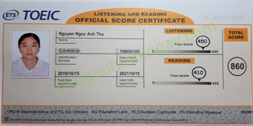 Sau đó bạn Anh Thư đã thi TOEIC chính thức và đạt 860 điểm TOEIC thật. Một số điểm rất cao!!!
