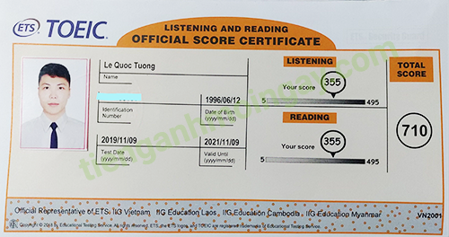 Sau 3 tháng ôn tập trên Tiếng Anh Mỗi Ngày, anh Tường đã tăng từ 550 điểm ban đầu để đạt 710 điểm TOEIC thật. Hiện anh Tường vẫn đang học trên TAMN để cải thiện điểm số của mình.
