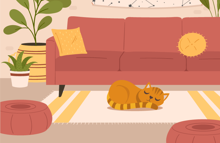 The cat lying on the floor won't get up.