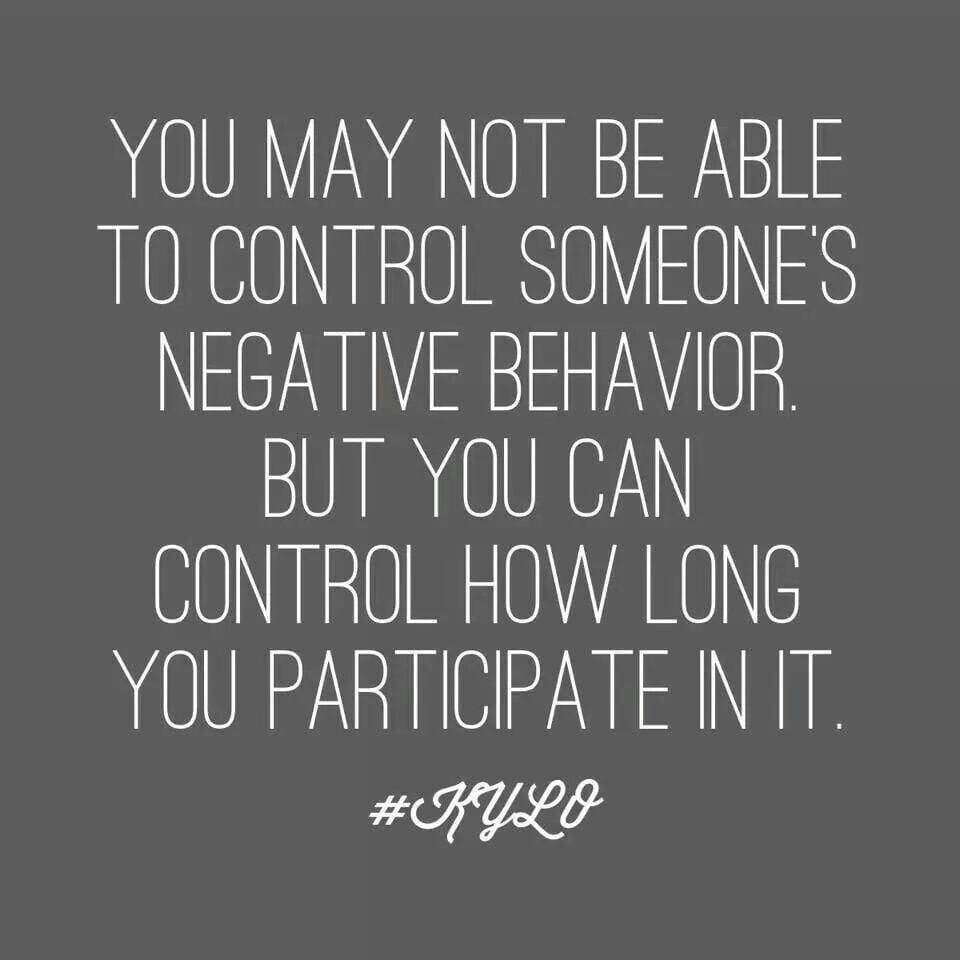 "You may not be able to control someone's negative behavior. But you can control how long you participate in it."