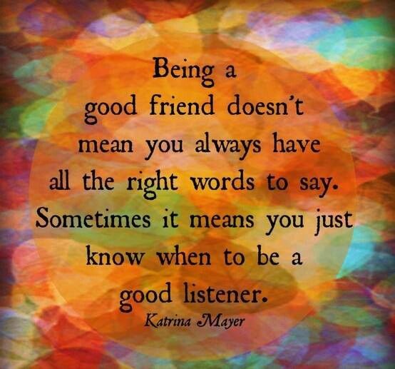 "Being a good friend doesn't mean you always have all the right words to say. Sometimes it means you just know when to be a good listener."