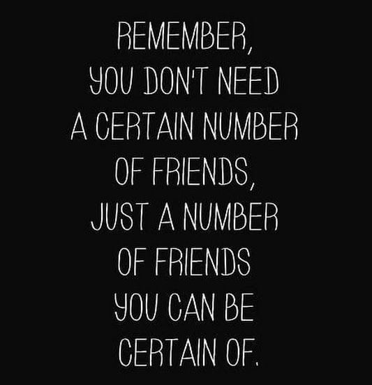 "You don't need a certain number of friends, just a number of friends you can be certain of."
