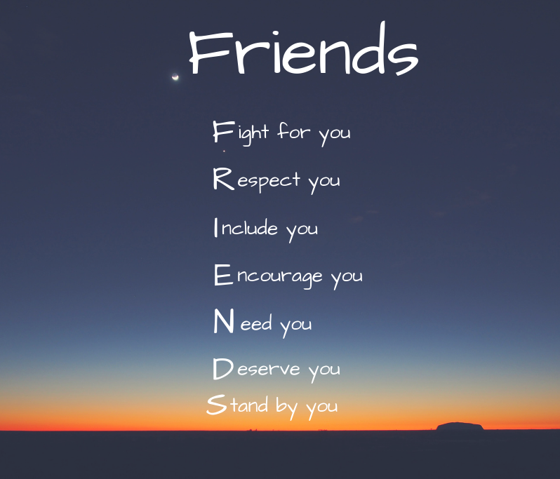 Họ sẽ là những người luôn đứng ra đấu tranh vì bạn (Fight for you), luôn tôn trọng bạn (Respect you), luôn nhớ đến bạn (Include you), luôn khích lệ bạn (Encourage you), luôn cần bạn (Need you), luôn xứng đáng với bạn (Deserve you) và luôn kề vai sát cánh bên cạnh bạn (Stand by you).