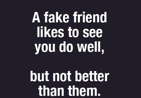 "A fake friend likes to see you do well, but not better than them", nghĩa là một người bạn xấu là người muốn bạn thành công, nhưng không muốn bạn vượt trội hơn họ. Trong mối quan hệ bạn bè, việc ủng hộ lẫn nhau là một điều thiết yếu. Nếu một người không thể vượt qua được lòng tự tôn hay tính ích kỷ của mình, họ sẽ không bao giờ thực sự cảm thấy vui mừng khi bạn đạt được thành công. Thay vào đó, họ sẽ chỉ trải qua sự đố kỵ và cảm giác không hài lòng.