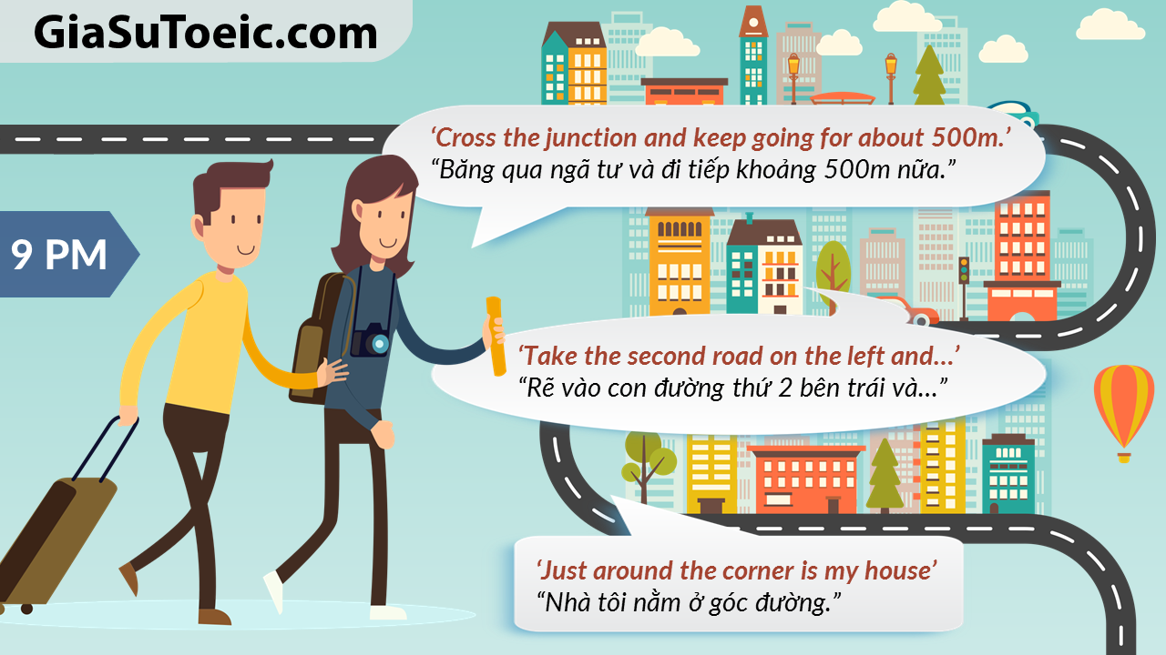 Ở quanh góc đường là nhà tôi. - Turn right at the crossroads.