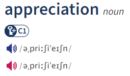 Từ appreciation có phiên âm là /əˌpriːʃiˈeɪʃn/.