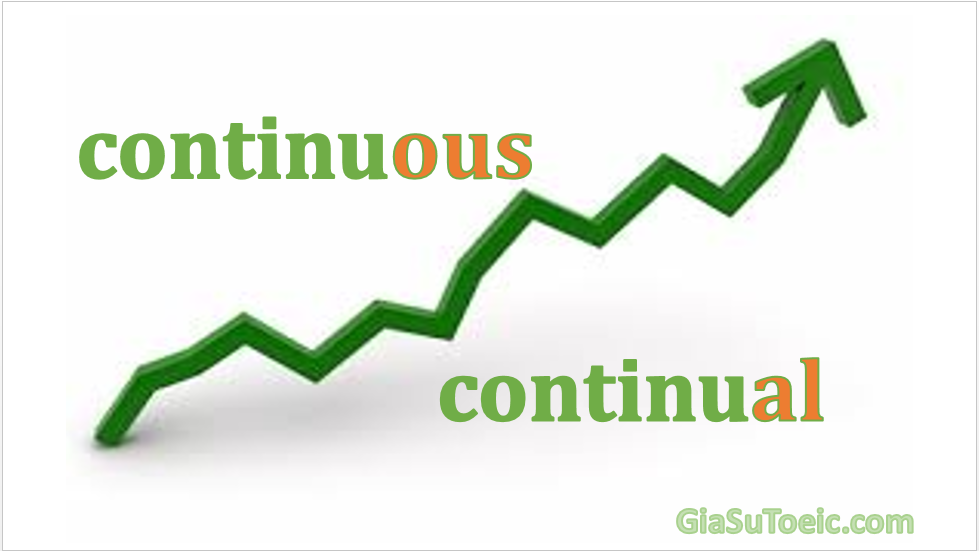 "continuous" và "continual" đều bắt nguồn từ động từ "continue" nhưng chúng có chút khác biệt về nghĩa.