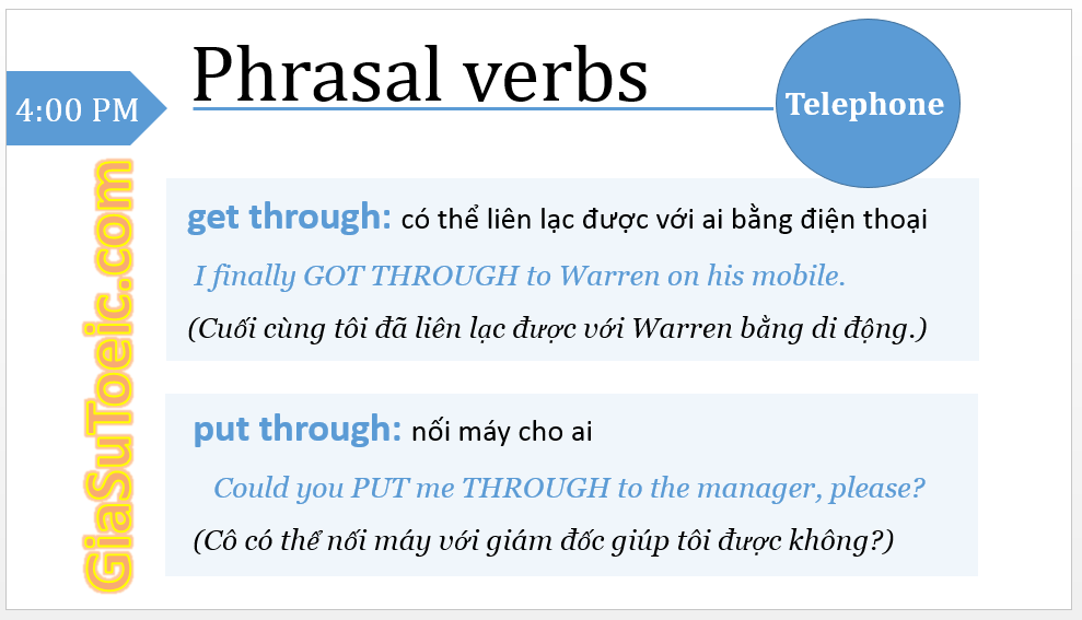 Luyện thi TOEIC Từ vựng TOEIC Bài này Phrasal verb theo chủ đề: Điện thoại (3) Với những bài học dễ hiểu, sát thực tế, Tiếng Anh Mỗi Ngày giúp bạn từng bước tự tin sử dụng tiếng Anh và chinh phục kỳ thi TOEIC. Luyện thi TOEIC online cùng Tiếng Anh Mỗi NgàyTạo tài khoản học thử (miễn phí) – để bắt đầu chinh phục mục tiêu TOEIC của bạn, và cảm nhận sự tự tin rằng bạn có thể giỏi tiếng Anh! Đăng ký bằng Facebook hoặc ⯈ Đăng ký bằng email Tìm kiếm bài học bạn đang quan tâm Tham khảo thêm những bài viết về những chủ đề tương tự 1400+ từ vựng TOEIC hay gặp nhất trong các đề thi TOEIC Trang bị từ vựng khi xin việc vào các doanh nghiệp nước ngoài. Phân biệt "from" và "form" Phrasal verb theo chủ đề: Động vật (5) Phân biệt "later" và "latter" Phrasal verb theo chủ đề: Động vật (4) Xem tất cả các bài viết về Từ vựng TOEIC