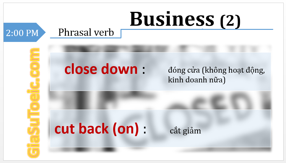 1/ close down: đóng cửa (không hoạt động, kinh doanh nữa)