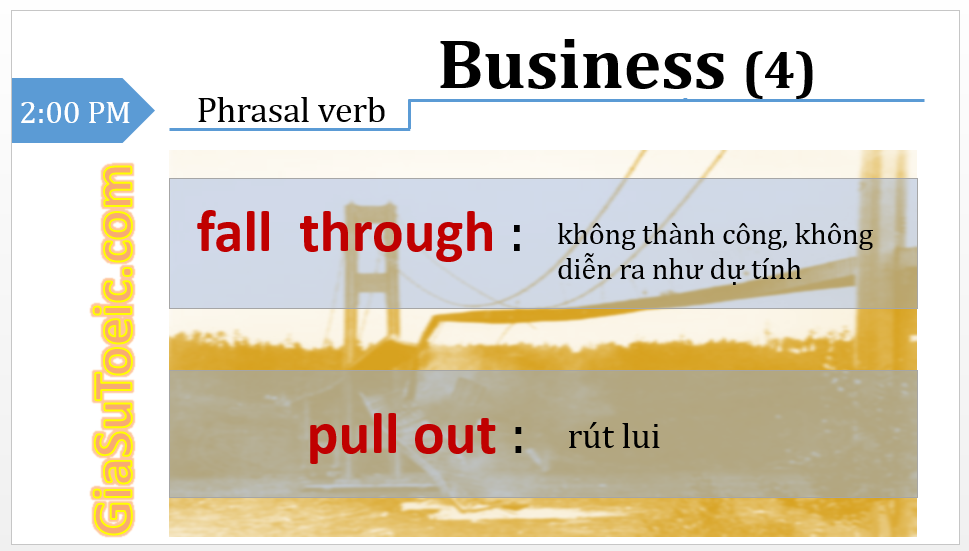 1/ fall through: không thành công, không diễn ra